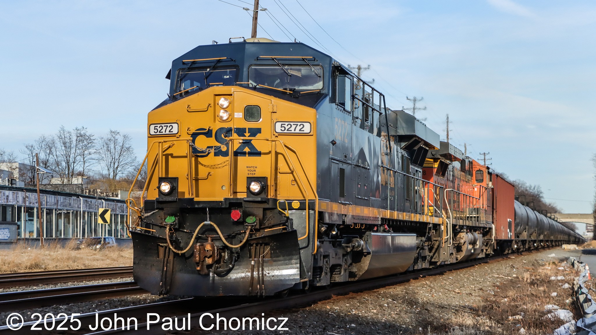 Westbound CSX tanks for Eddystone pass through Hillside, NJ on the afternoon of 12.20.25. It was the first catch of the day for me as I set up to wait for the Conrail Christmas Train.