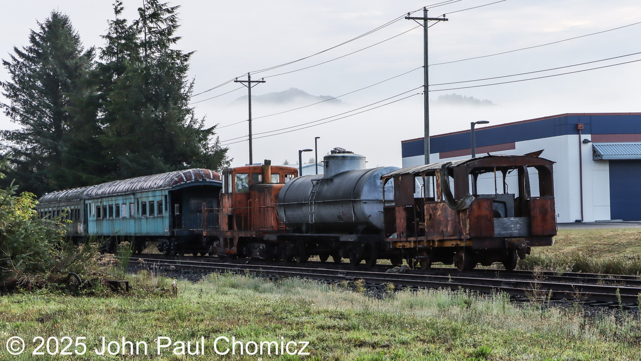 Some other rail equipment that found its way to the Oregon Coast Scenic Railroad, wound up stored on the scrap line near the Tillamook Air Museum at Tillamook, OR on 09.09.25. From what I've read, it is intended that this equipment will all be restored and returned to service as excursion trains.