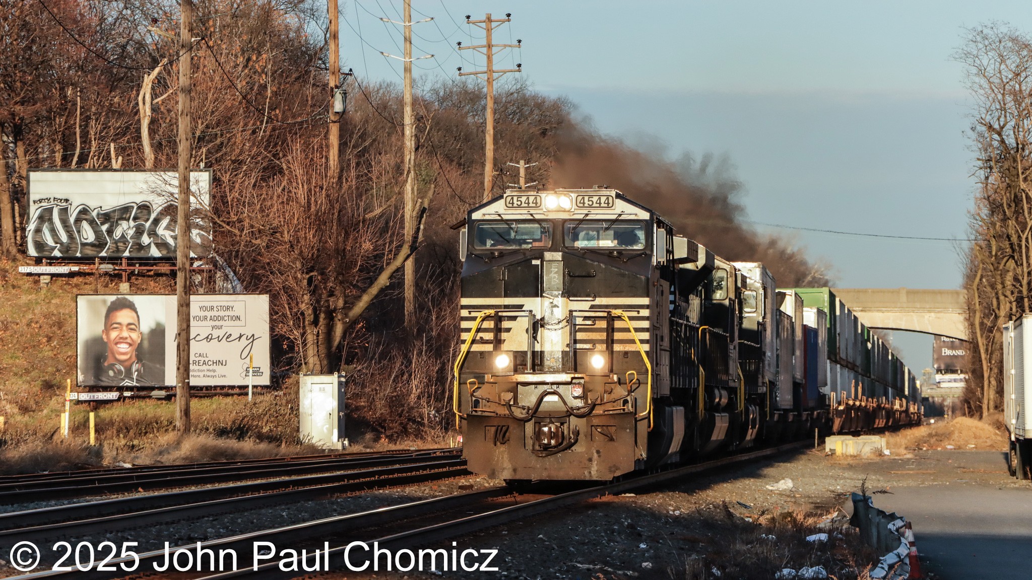 From what I was told by the fellow railfans, this was NS train #: 23G heading off into the sunset as it passed through Hillside, NJ on its way to Chicago, IL.