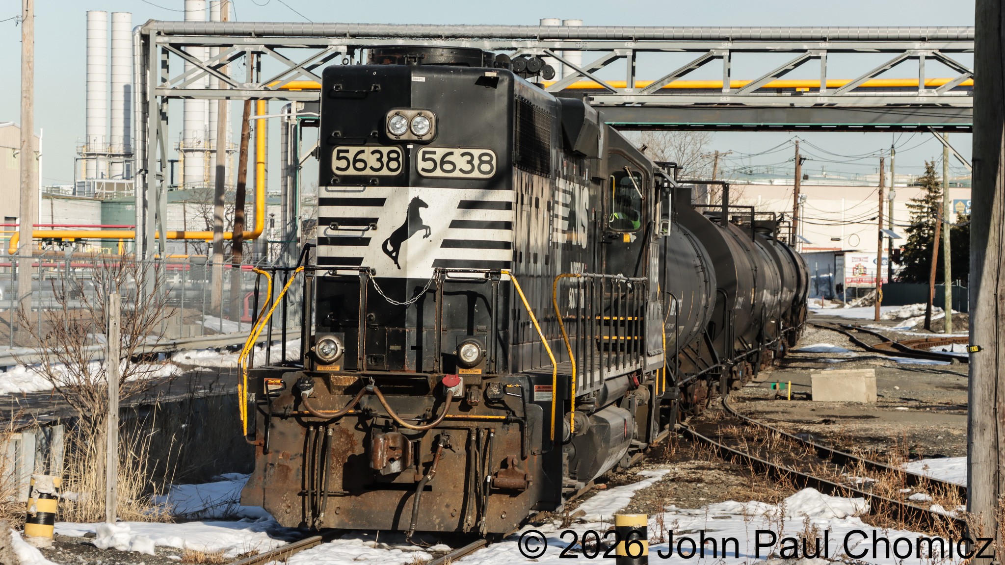 A few seconds later, Bayonne local YPBA-27 passes Chem South on its way north with the empties from Gordon Terminals on 03.02.26.