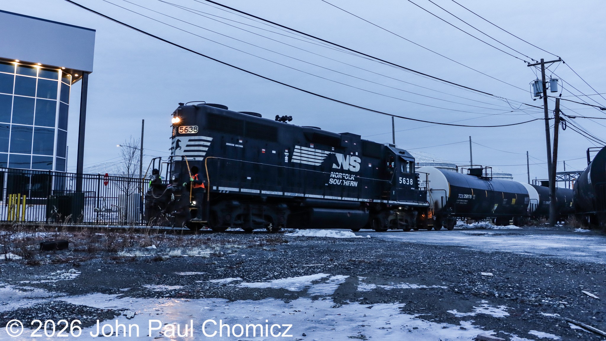 After dropping off the first cut of tank cars on the side track (far right), Conrail local YPBA-27 heads up the hill into Gordon Terminal with inbounds in tow. Like last year, my first catch of the new year was Conrail switching out Gordon Terminal in Bayonne, NJ on 01.05.26.