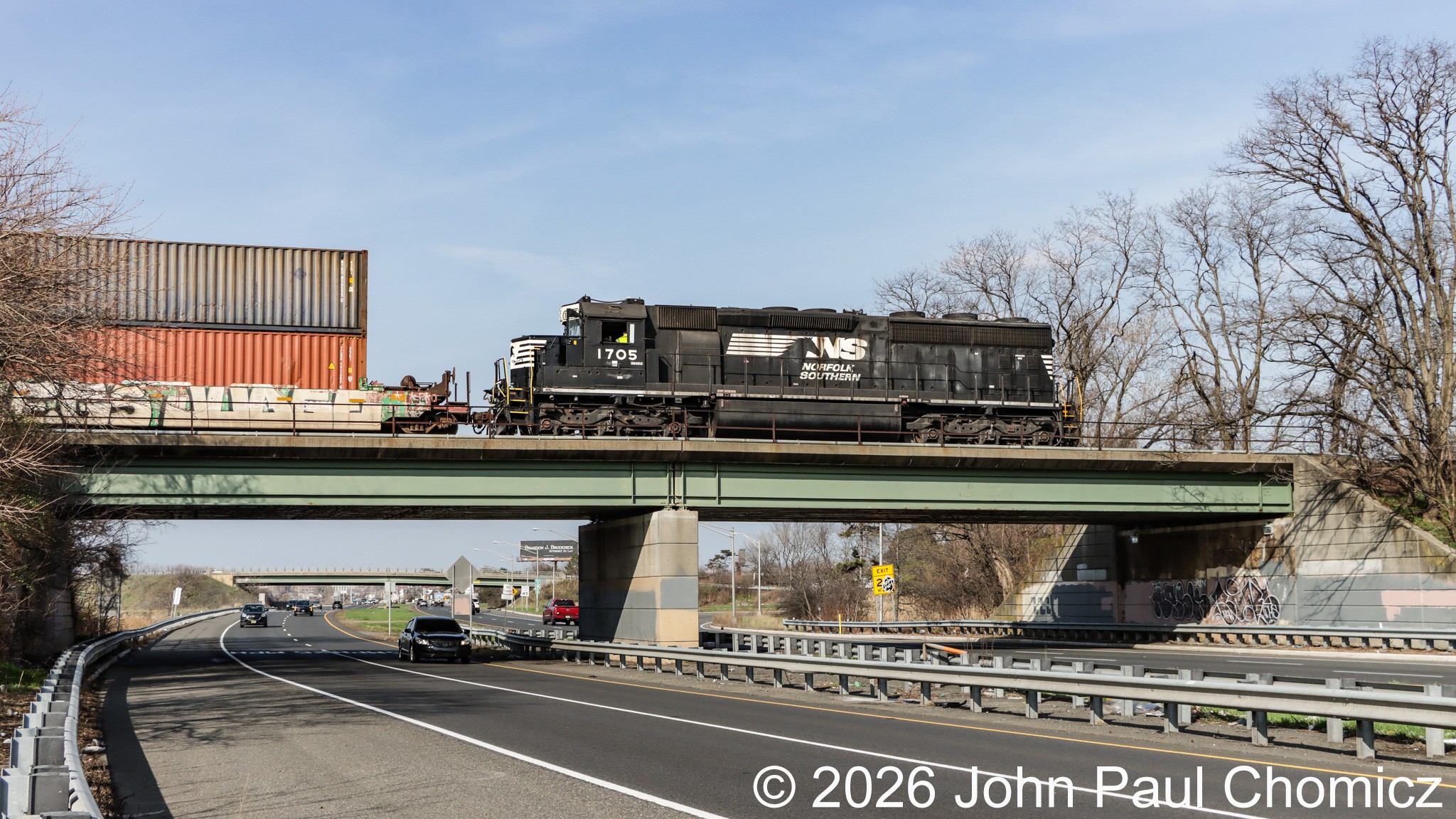 A few seconds later, the ExpressRail Transfer clears the Upper Bay Drawbridge and crosses over Route #: 440 as it nears the ExpressRail Yard at Global Container Terminals Bayonne.