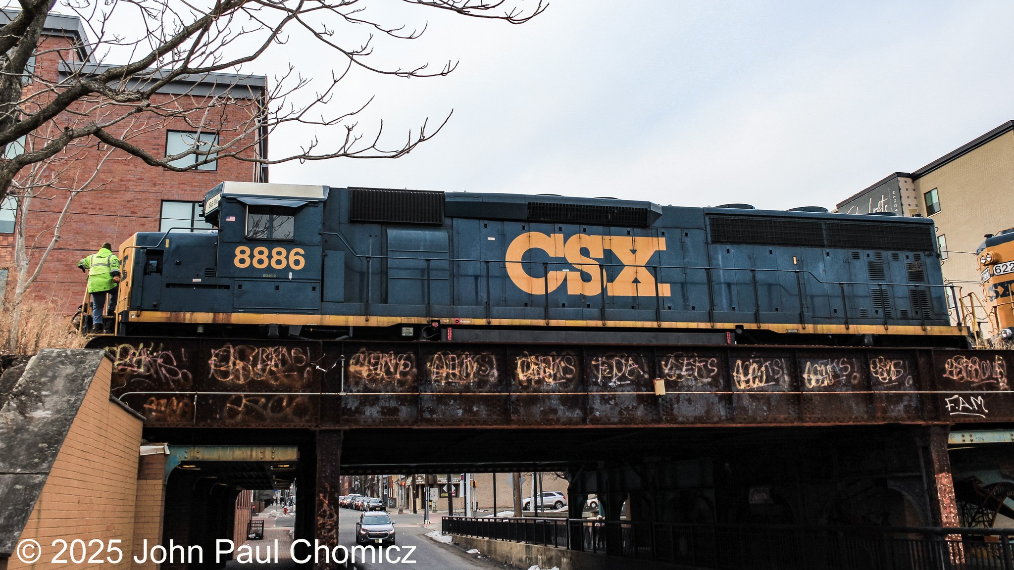 Later on the afternoon of 02.26.21, Conrail local YPBA-03 stopped over East 22nd Street upon arrival to Bayonne Yard. The conductor is getting back on the train after flipping the switch to head into the yard.